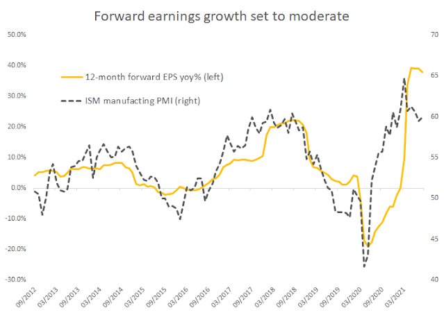 - 週五 美國 ISM 將發布 9月 PMI (製造業採購經理人指數),PMI 與 S&P 500 公司 EPS 呈現一定相關性 (下圖),而 S&P 500 公司 EPS 又與指數高低相關