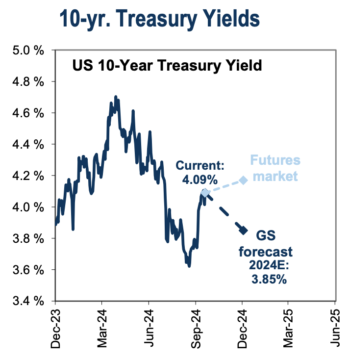 圖 1-1、高盛預測 10 年期國債利率年底 3.85%、中長期接近 4.2%